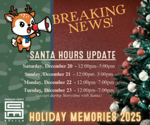 Remember, schedule changes do happen. Check the Museum’s FACEBOOK page for the most up-to-date Santa announcements.