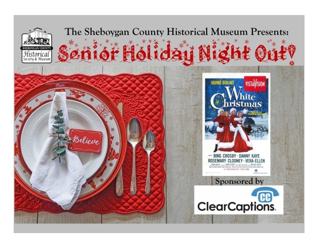 Thanks to the sponsorship of Clear Captions, the Sheboygan County Historical Museum was able to host our first ever Senior Holiday Night Out on December 19, 2019! This highly anticipated event quickly sold out spots, and was a huge success! Guests 55+ enjoyed a free dinner and conversation, followed by a presentation by Clear Captions representatives Jack Bechaud and Mark Bishop (Take away – Yes! Clear Captions is absolutely free and so helpful!). Then after coffee and Christmas cookies (you can’t have a holiday party without cookies!), we settled in for a showing of 1954’s White Christmas! The film is celebrating it’s 65th anniversary this year!